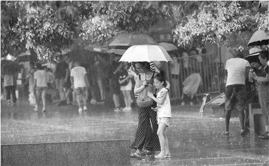 昨天傍晚时分,杭城来了局地的雷阵雨,把暑热浇了一些。昨晚8点06分,杭州气象台发布雷电黄色预警信号:受强雷雨云团影响,预计当天夜里杭州主城区将出现雷阵雨,短时雨量可达大到暴雨,并伴有6至8级雷雨大风和强雷电,请注意防范。