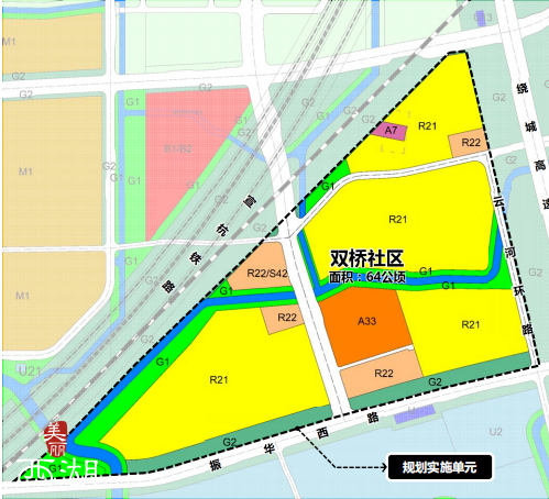 双桥未来社区重点项目包含住宅生活圈,用地性质以居住用地、公建配套和教育设施用地为主,规划有九年一贯制学校、幼儿园等,项目属于改造提升类,规划实施面积约64公顷。