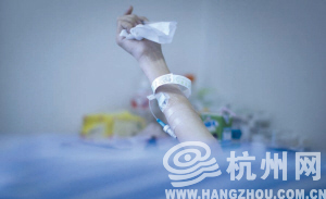 每天都要挂很多点滴,她手臂上都是针孔。 记者 朱丹阳 摄