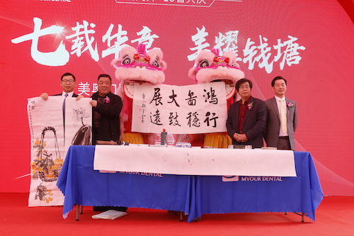 象征着开门红的响鼓,每一下都敲击在现场宾客们的心头,一记记鼓声,如同美奥稳健的步伐,坚定有力的向杭城人民宣告着它的到来。舞台边舞动的雄狮,预示着杭州美奥站在新的起点,踏上新的征程。祥狮来献瑞,带着社会各界的祝福,领导嘉宾们将寓意吉祥好运的水注入干冰中,冉冉升起的“美奥口腔盛大开业”八个大字代表了美奥口腔将开启新篇章。 杭州美奥一直致力于为杭城市民带来卓越的、精准化的、人性化的口腔医疗服务。牙齿好,身体才会更健康。作为一家口腔机构,杭州美奥口腔一直为提升杭城市民的口腔健康意识,为全市人民的口腔健康努力着。