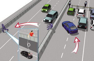 此时,在高架桥上,另一路交警支队机动大队的警官正在拦截那个扔枪人。