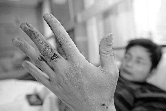 这名男子被120送到了市三医院。他叫郑生伟,36岁,富阳人,是个装修工人。经过检查,他主要是软组织挫伤,左腿骨折。郑生伟说,这一切都是一个叫但静(音译)的湖北男子造成的。