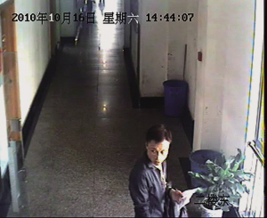 跆拳道馆门厅外的楼道监控显示,一个中年男子在跆拳道馆几次出入。商务大厦外的监控拍到,他从跆拳道馆出去后,右手提着电脑包,左手拿着很像车钥匙的东西,在楼下来回一路小跑。之后,跑出香樟公寓南大门,右转,跑出了监控区域……