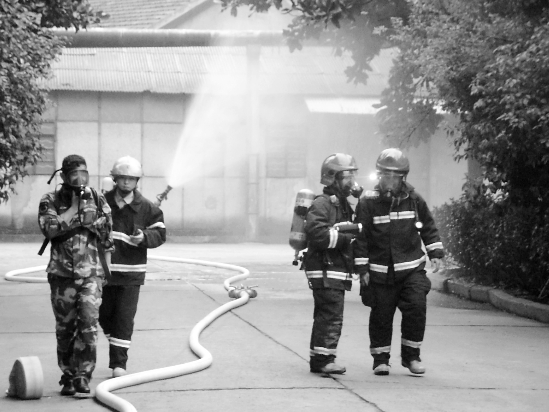 景芳中队指挥员立即让全体参战人员佩戴空气呼吸器,并成立事故现场堵漏、关阀攻坚组和警戒小组,并为该厂的技术人员做好安全防护,佩戴空气呼吸器。