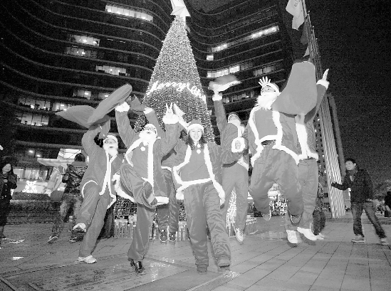 而昨晚,最忙碌的人就是本报在12月21日向杭州市民征集了10位很Fashion的圣诞老人。这十位有时代特色的圣诞老人全体出动,在广场上满场飞,向路人赠送圣诞帽和天使翅膀,做起了应景的短工。