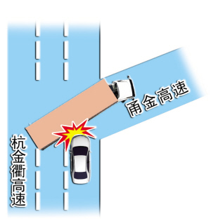 去年7月,这里曾出过重大事故,快报也有报道:一辆半挂车先是碰撞左侧护栏,再冲破中央活动护栏,最后撞上对向车道的槽罐车,半挂车上4人当场殒命。