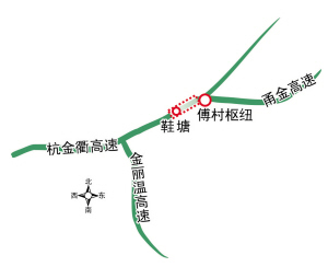 这段路,始于杭州方向过金华东收费站10公里,至鞋塘路段与甬金高速的傅村枢纽。