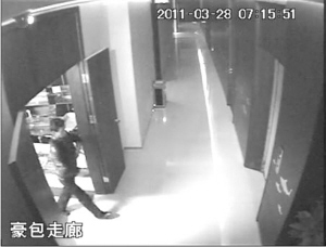 监控显示:当天早晨6:20,一个身高1米7、约40岁的穿深色皮夹克的男子穿过酒店生鲜区。