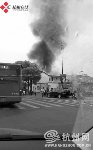 昨天下午4点08分朱鑫华、张国威来电报料:望江路胡雪岩故居北面一处房子发生大火,消防已经赶到。