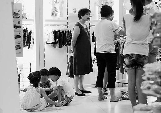 家长在讨论怎么讨回公道,小朋友们在一边玩得很开心。