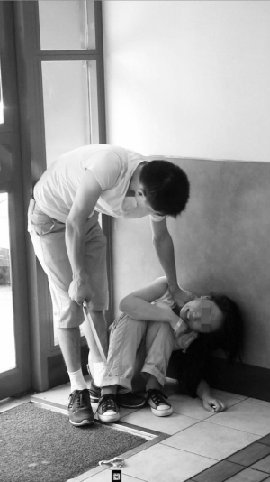 但男子用刀背拍了拍女子的头,叫嚣:“你们再过来,我就捅到脖子了。”