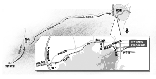 吕先生夫妻俩先抱着孩子去了当地县医院。医生看过后,觉得孩子太小、病情太重,建议到大医院去。而杭州离婺源300多公里,是最近的大城市。夫妻两个顾不得多想,赶紧联系了一个临村开出租车的老乡,花了三个小时赶到杭州。