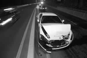 中河高架北向南方向、上仓桥路和万松岭路之间的桥面上,一辆黑色三菱越野车(车型为欧蓝德EX·劲界)被一辆白色玛莎拉蒂(车型为玛莎拉蒂GranTurismo S,售价200多万元)追尾后,侧翻。