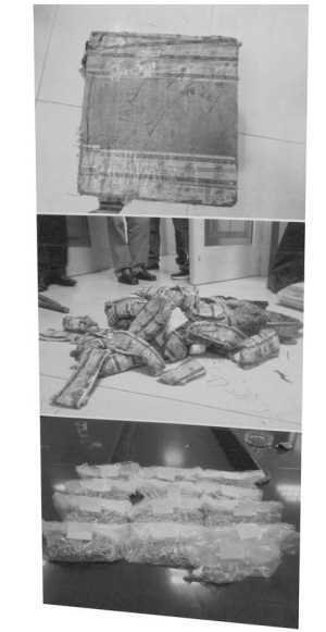 价值600余万元的黄金饰品被包装在普通快递箱里(检方当庭出示的证物照片)