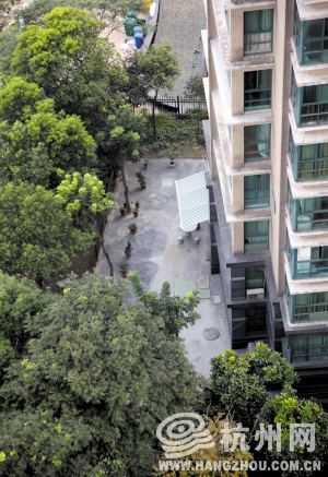 ××幢位于小区东南角,网友“dsssss”所说的那片水泥地,就紧挨着这幢住宅楼。水泥地呈不规则半弧状,掩在一片绿树中,不留心还不太容易发现,必须从这幢楼正门绕过去,沿着小石板路走20多步才能看见。