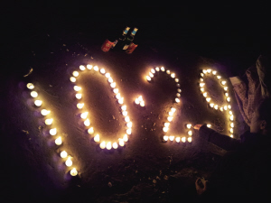 悠泳俱乐部会员在江堤上摆蜡烛缅怀老苏