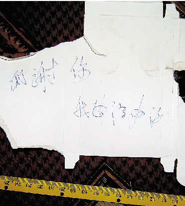 王女士说,早上6点多起床,先是发现卧室的笔记本电脑不见了;走到楼下一看,停在一楼门厅的电动车也没了。家里遭贼了!她再一看,彻底懵了:门厅的桌子上居然有张破纸条,是从药盒上撕下来的一片纸,上面歪歪扭扭写着:“谢谢你,我也没办法!”