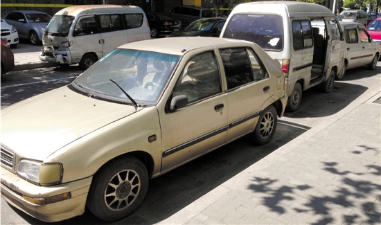 尽管车位如此紧张,记者依然见到了“僵尸车”的身影。在一幢居民楼前,一辆车牌号“4”字打头的小面包,全身积满了厚厚的灰尘,四个轮胎全瘪了,但这依然不妨碍它“安逸”地停在车位里。对于这辆车,附近几幢楼的有车一族们全都恨得牙痒痒。“每天下班回来,都得花大半个小时停车。清晨,经常被移车的电话吵醒。为了车位,邻居没少吵架。”家住小区的张先生告诉记者,这辆小面包,在这个车位至少停了两年,从来没见过车主。曾经有人找交警,想移走它,没成功,只好放弃了。