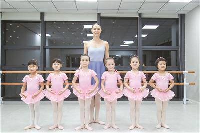 身姿挺拔优雅的俄罗斯籍芭蕾舞老师艾拉(Elvira Bagautdinova)努力用不那么标准的中文,挨个纠正孩子们的动作与体态。