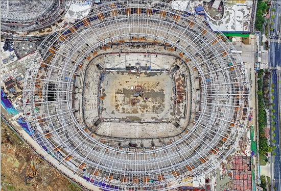 场馆筑起 钢筋铁骨
