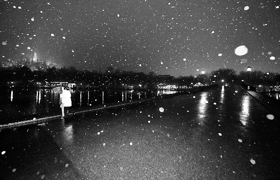 昨晚,杭州断桥上飘起了点点雪花。 黄佳健 林云龙 李震宇 摄