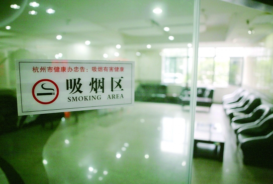 杭州市政府办公室全部禁烟,每个楼层都开设了专门的吸烟区。 李翔 摄