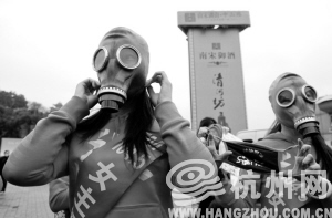 昨天开始,你可能会在路上看到一些身材曼妙的女子穿着艳丽,头上却戴着防毒面具——这是FM104.5全国惟一女主播电台的十二星座女主播,用夸张的方式提醒您:吸烟有害健康,不要在公共场所吸烟。