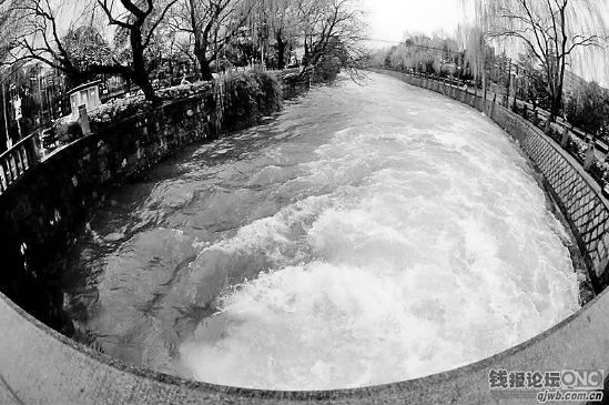 连日大雨,西湖水位高涨,圣塘闸开闸泄洪, 小时泄放的水量有6万立方米! 在西湖的历史上初春连续开闸泄洪不多,连续两年在这时候连续泄洪排涝更不多见。longg摄