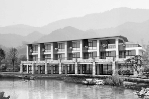 杭州市第三社会福利院套间楼外景设计效果图。