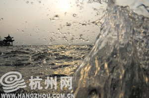 昨日下午4时40分,湖滨路,大风将西湖水吹起阵阵波浪。 见习记者 李鹏 摄