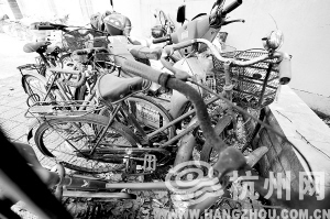 另一些设在公共区域的敞开式车库则情况相对较好,在连续几年创建“清洁杭州”的活动中,社区和单位每年都会清理一批无主的自行车。比如浙工大专门设了一个无主自行车区域,定期收集校园内的无主车辆,到了学生毕业的时段定期处理。