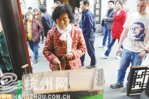 昨天下午,河坊街上,一阵悠扬的琴声夹杂着急促的快板在空中飘荡,让大家惊奇的是,这把琴实在是太土了,却能发出如此美妙的声音。老人姓王,来自安徽,今年60多了,在河坊街上表演多年了。说起这把琴,王老太说这是46年前做木匠的叔叔给她的生日礼物。
