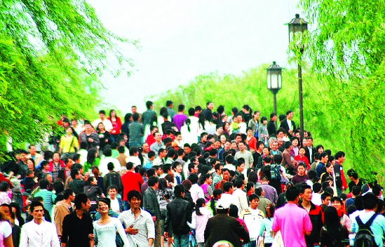 每年的“五一”节假日,西湖边总是人头攒动。(本报资料照片)