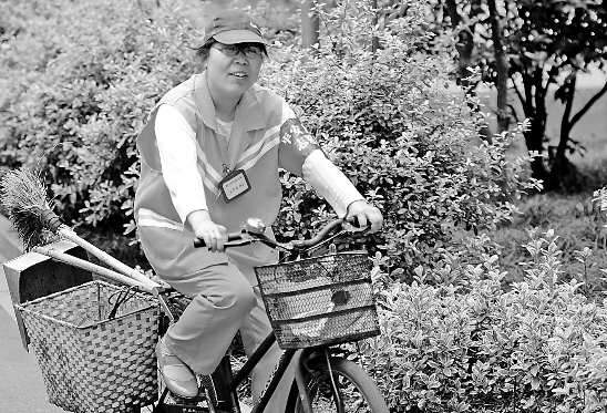 50岁的孟月仙在新工社区做了7年保洁员。每天,她都骑着自行车在社区里来回,拾捡地上的垃圾。原本就住在小区的她对周围的环境可谓了如指掌。
