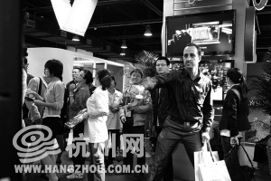 在2010中国杭州电子信息博览会上,参观者正在中国电信展台体验ITV互动体感游戏,这种游戏是通过光宽带实现的。 刘寰平 摄
