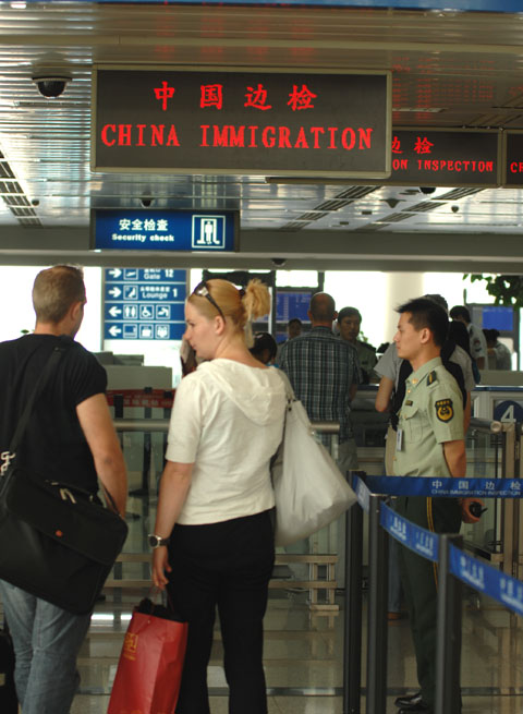 杭州边防站三级检查员杨震在检查护照 赵生祥 摄