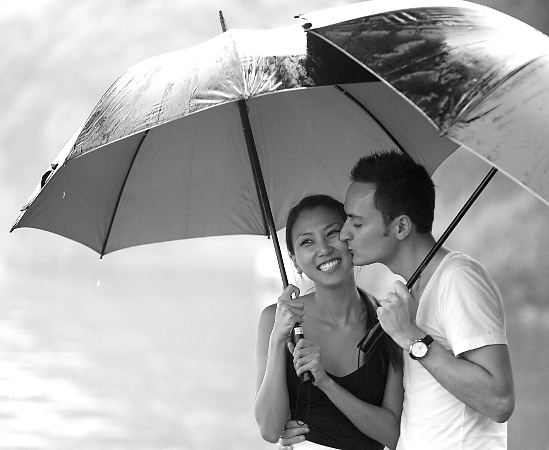 昨天,杭城细雨绵绵,雨天的西湖就如诗中所说“水光潋滟晴方好,山色空蒙雨亦奇。欲把西湖比西子,淡妆浓抹总相宜。”外国小伙和女友漫步在白堤上,在如此浪漫的景致下不忘偷偷在女友的脸颊上深情一吻。 李翔 摄 图片来源:钱江晚报