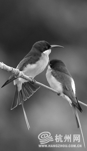 “前阵子,丽水首次发现蓝喉蜂虎,在长三角一带鸟友中引起轰动。鸟友们都赶去丽水拍蓝喉蜂虎,我却在杭州和它意外相遇。”钱斌说,蓝喉蜂虎是夏候鸟,从东南亚飞过来,属于国家二级保护鸟类。