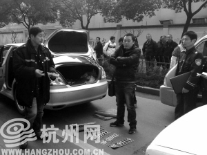 4月1日,中河高架上一辆“马六”轿车冲卡被交警拦下后,司机开门逃跑,扔下一把钢制仿六四式手枪,车上另一男子驾车逃跑。第二天,警方在文二路一家酒店,找到了那辆“马六”轿车和嫌疑人,一并移交派出所处理。