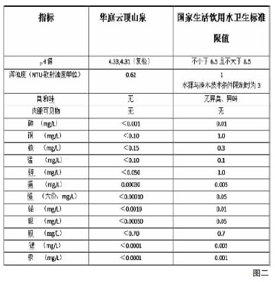 重金属超标是山泉水最容易出问题的地方,但是云顶山泉的铜、铁、锰等指标都在国家规定的数值范围内。