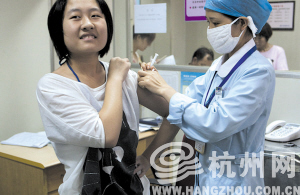 天气热了,人们的衣服穿得少了,裸露在外的身体容易遭猫狗的抓咬。这些天打狂犬疫苗的市民很多。 见习记者 杨曦 摄