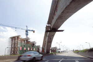 昨天,沪杭铁路客运专线(沪杭高铁)杭州段跨石大路桥转体桥顺利实现转体合龙,标志着沪杭铁路客运专线工程取得决定性的胜利。沪杭铁路客运专线跨石大路转体桥主跨160米,单个转体桥梁重量达1.68万吨。沪杭客专转体拱桥建设应用了5项中国自主创新技术,克服了精度高、技术新,地质复杂等难题,实现了我国乃至世界高速铁路施工技术的突破。 新华社发