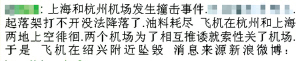 接下来又有“进一步的消息”称,有飞机“起落架打不开没法降落了,油料耗尽,飞机在杭州和上海两地上空徘徊,两个机场为了相互推诿就索性关了机场,于是飞机在绍兴附近坠毁”。
