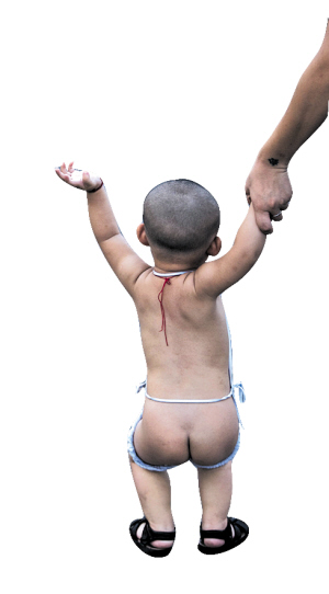 断桥上,四川成都的小男孩王一涵,穿得很清凉。见习记者 许康平 摄