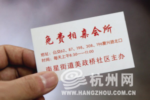 南星街道美政桥社区,有个免费相亲会所,成立10个月还不到,会员已发展到1200多人,影响力遍及杭州8城区,名头越来越响,有社区版“万松书院”之称。