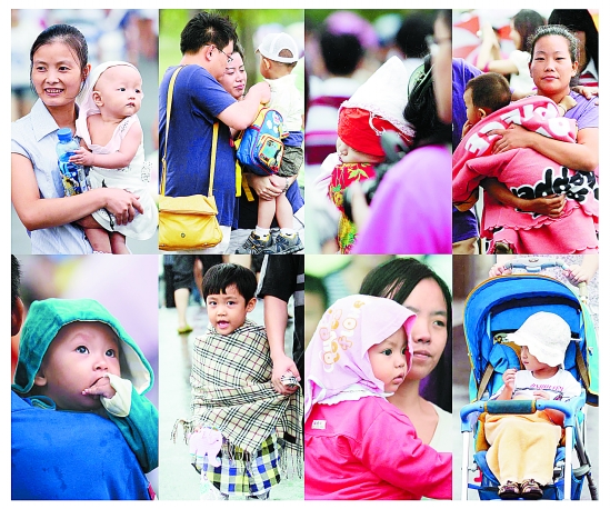 降温了 9月22日,杭城冷风细雨,气温骤降,让出游的人们措手不及。图为西湖景区白堤上“全副武装”出游的孩子们。魏志阳 摄