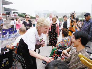 扩大对外合作与交流,市关工委与美国加州扶轮社建立了长期的友好合作关系,先后三次捐赠290辆轮椅和50只功能性假肢获得成功,共同为杭州市残障青少年办实事、做好事、行善事。
