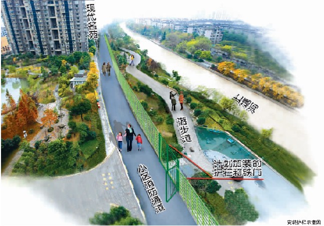 朝晖现代城就遭遇了这样的困扰。昨天起,现代名苑加装护栏问题进入公示阶段,小区和游步道之间要不要加道“安全闸”?一周内将由全体业主决定。