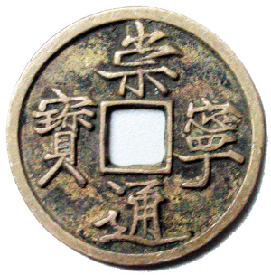 龙凤通宝:元至正十一年,红巾军领袖韩山童被元军杀害,至正十五年(1355年),刘福通红巾军首领迎立其幼子韩林儿称帝,建都安徽亳州,国号“宋”,建元龙凤(1355-1366),铸龙凤通宝钱。此钱铜赤如金,钱体浑朴,文字遒美。“龙凤通宝”四字楷书,直读,光背无文。