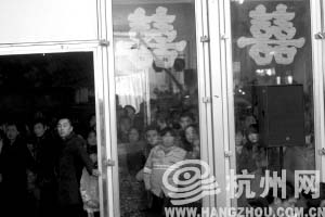 新郎的妈妈侯女士,跟在新郎后面照应。她笑着说,儿子大学毕业第二年就做起了装修,开公司做业务,杭州也做,外地也做,天津、福建都要跑的,事业还是比较成功的。